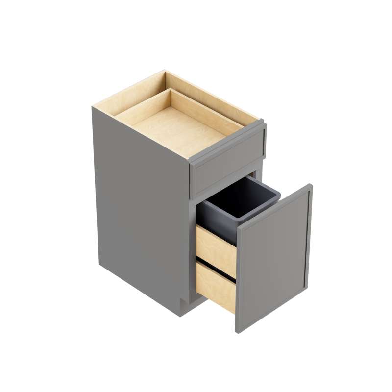 Framed trash can base cabinet with (1) door, (1) drawer, and (1) trash bin