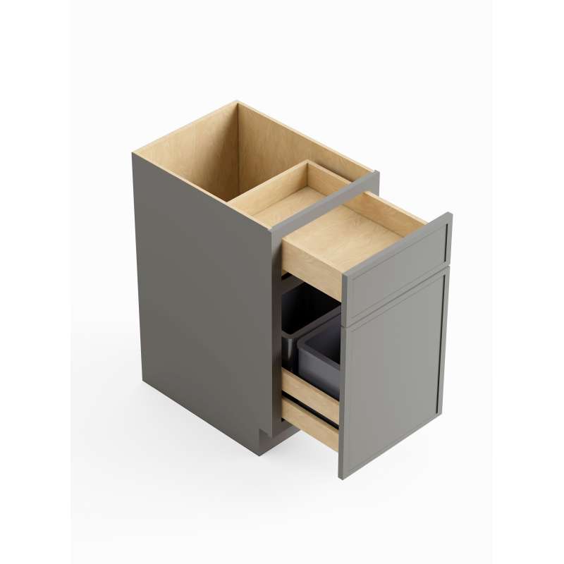 Framed trash can base cabinet with (1) door, (1) drawer, and (2) trash bins