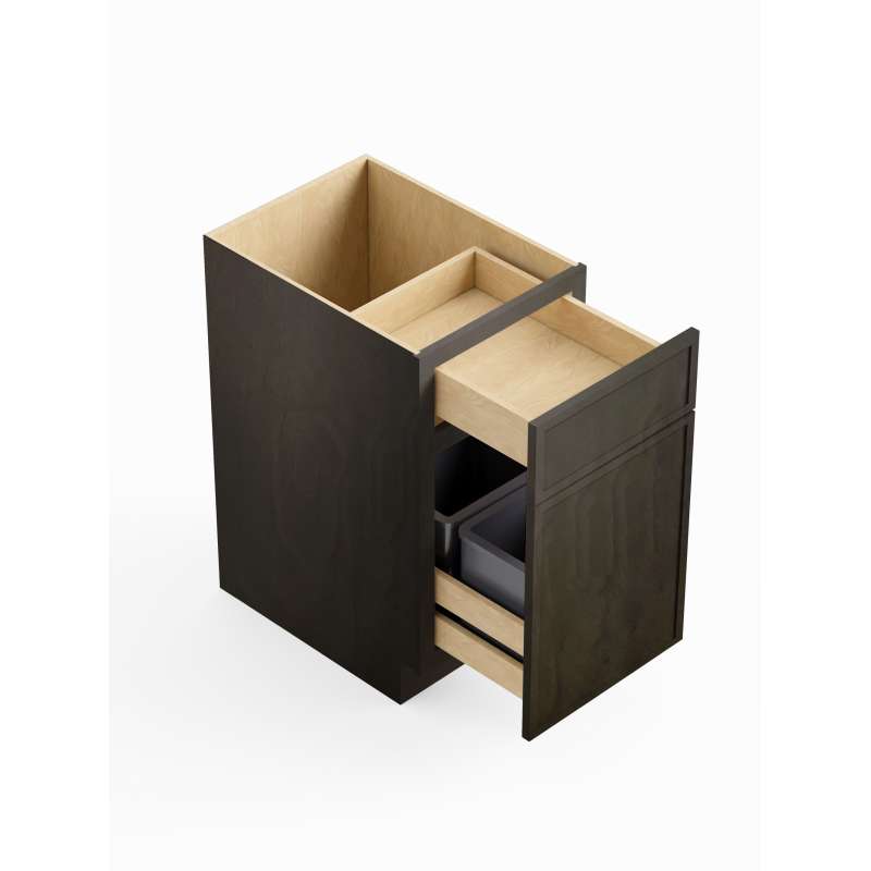 • Framed trash can base cabinet with (1) door, (1) drawer, and (2) trash bins
