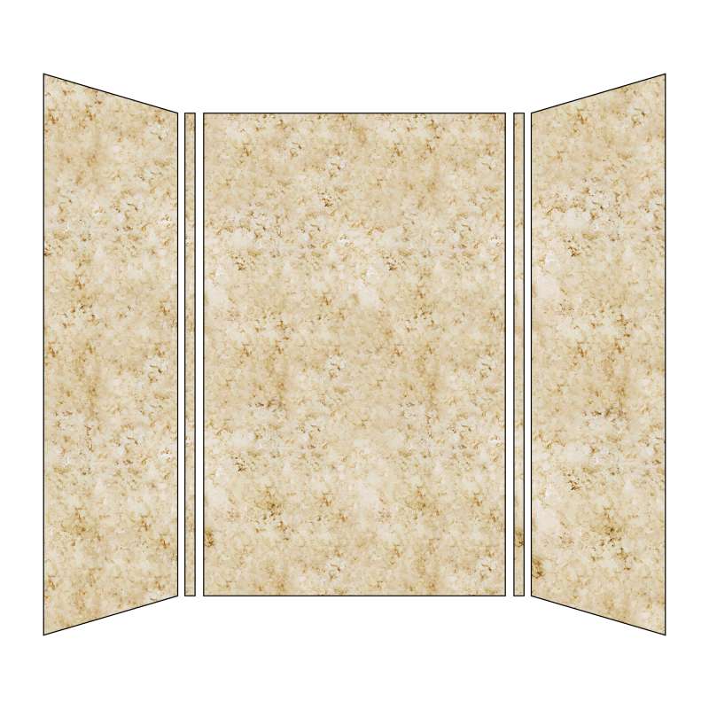 (1) 60-in back wall panel, (2) 36-in end wall panels, (2) color coordinated inside corner trim pieces