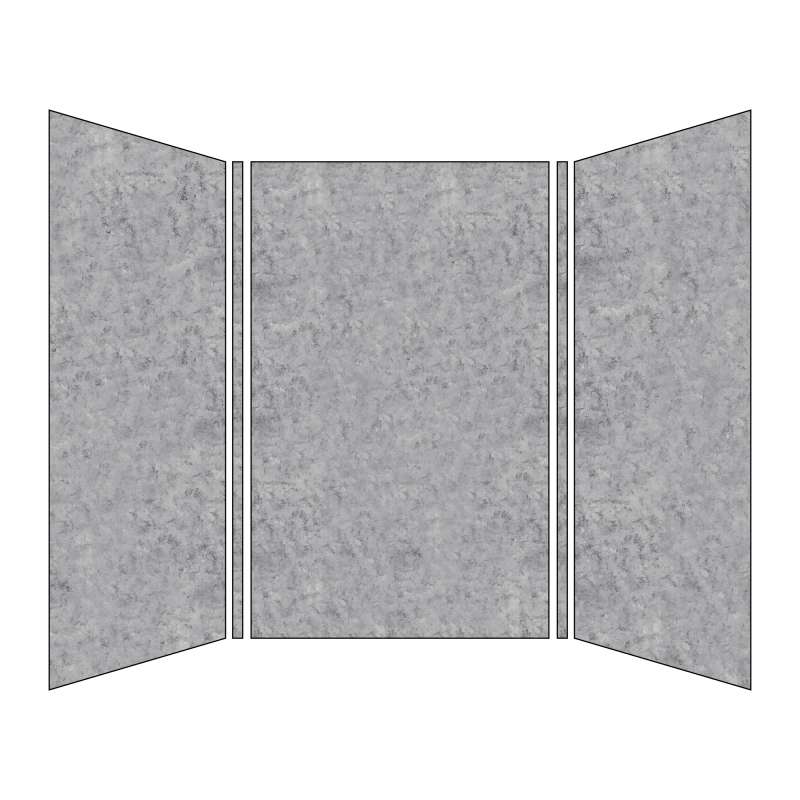 (1) 60-in back wall panel, (2) 48-in end wall panels, (2) color coordinated inside corner trim pieces