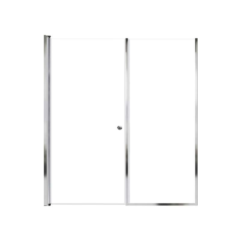 • SMLSDF627006C-PC Lydia 62-in x 70-in Pivot Shower Door And Fixed Panel With 1/4-in Clear Glass And Double-Sided Knob Handles, Polished Chrome Clear / Polished Chrome