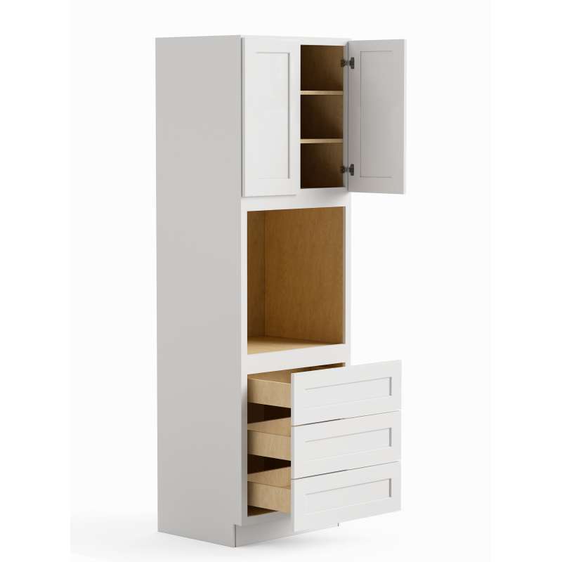 Framed tall oven cabinet with (2) doors, (3) drawers, and (2) full depth shelves