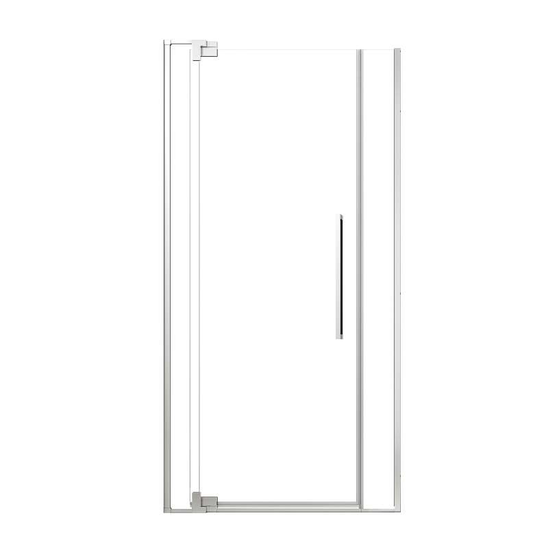 • 39-in to 43-in W x 76-in H hinged pivot shower door with fixed panel and inline panel for an alcove shower