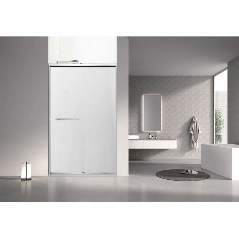 • SMSBP487808F-PC Stratus 48-in x 78-in Bypass Shower Door With 5/16-in Full Frost Glass And Round Tube Handles, Polished Chrome Frost / Polished Chrome
