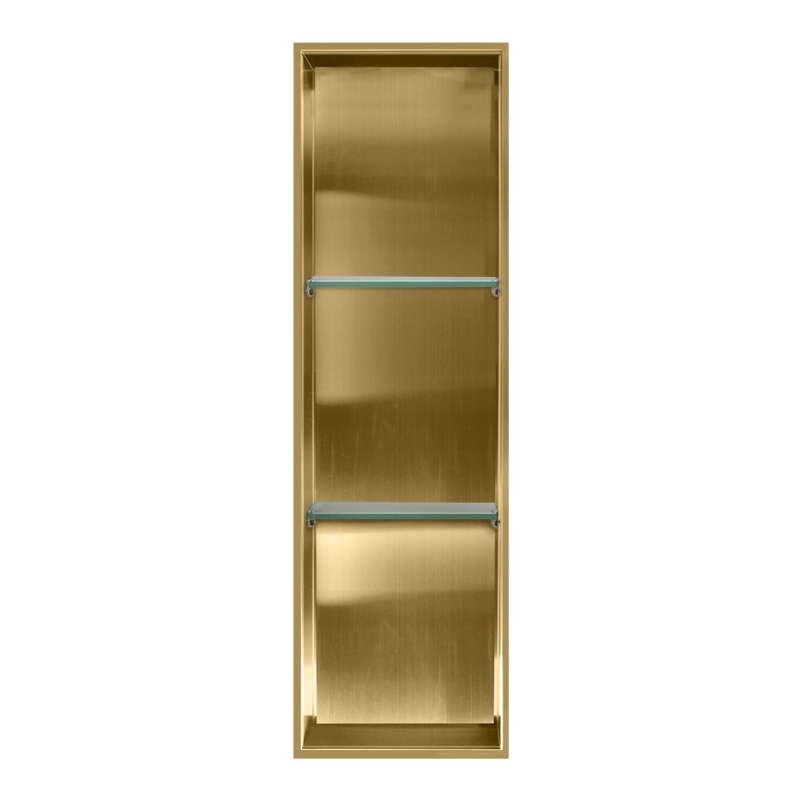 SMSTV4614-CB 14-in x 4-in x 46-in Recessed Stainless Steel Vertical Shower Storage Pod With Two Shelves, Champagne Bronze