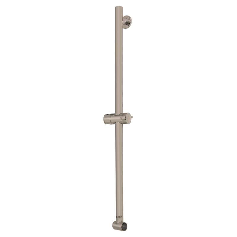 Vertical grab bar has hand shower cradle that slides up and down the grab bar; hand shower not included