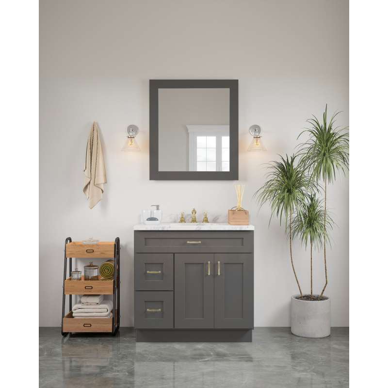 • SMV3621DL-2D-ASM-FR01-SG Framington 36-in x 21-in x 35-in Assembled Remington Vanity Combo Base Cabinet With Two Drawers on Left, Smokey Grey Smokey Grey / Assembled