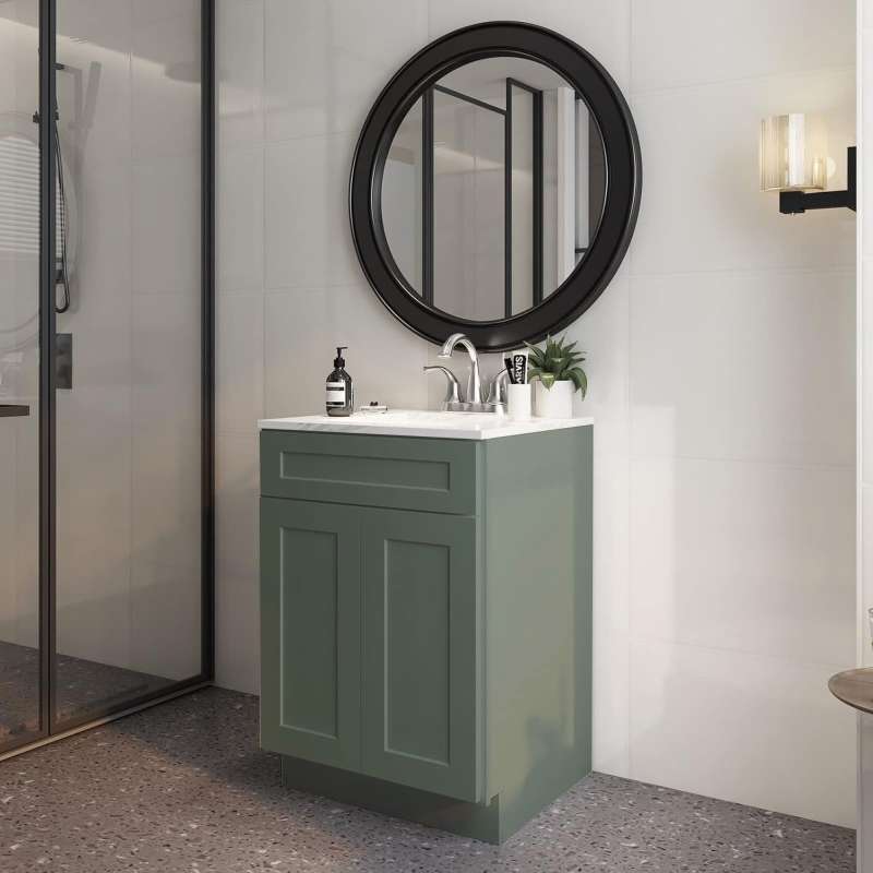• SMVS30S-RTA-FR01-GR Framington 30-in x 21-in x 35-in Ready To Assemble Remington Double Door Single Drawer Front Vanity Sink Base Cabinet, Green Green / RTA