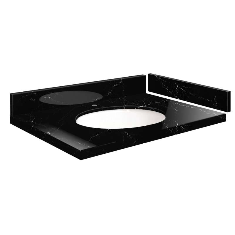 Sale SMVT25-30.75x22-1MU-M30 Mini Custom Quartz 25-30.75-in x 22-in Vanity Top with Millwood Bowl, Black Carrara
