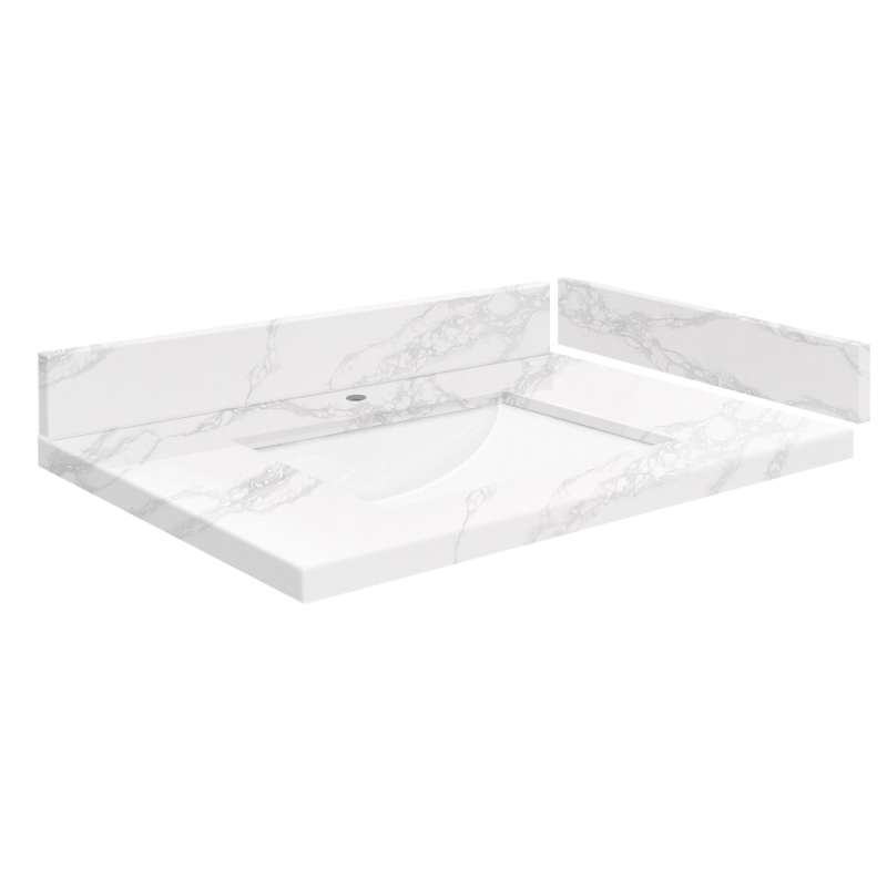 Sale SMVT31-36.75x22-1RU-M10 Mini Custom Quartz 31-36.75-in x 22-in Vanity Top with Hensley Bowl, White Carrara