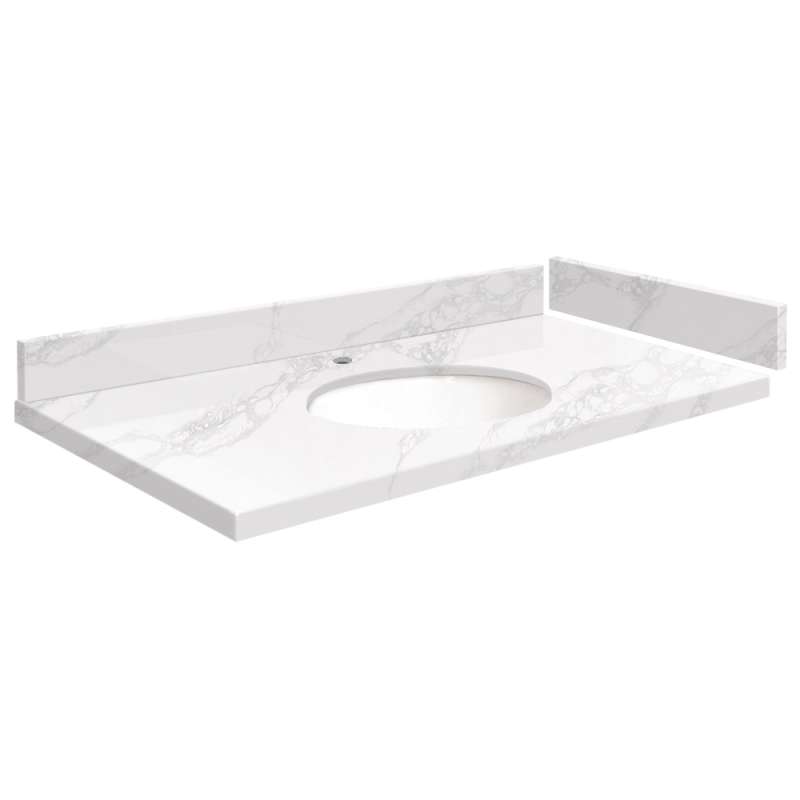 Sale SMVT37-42.75x22-1MU-M10 Mini Custom Quartz 37-42.75-in x 22-in Vanity Top with Millwood Bowl, White Carrara