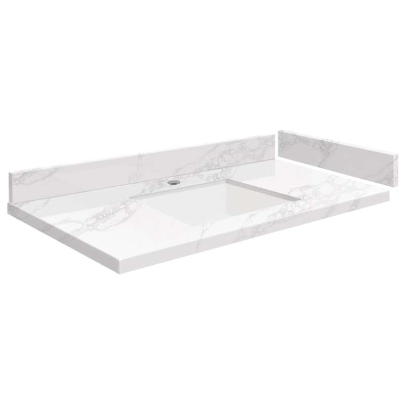 • SMVT43-48.75x22-1KU-C01 Mini Custom Quartz 43-48.75-in x 22-in Vanity Top with Vail Bowl, Mia White Mia White