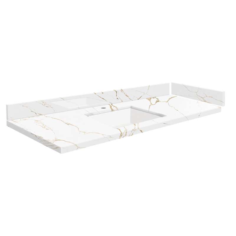 • SMVT49-60.75x22-1KU-M40 Mini Custom Quartz 49-60.75-in x 22-in Vanity Top with Vail Bowl, Awaken Gold Awaken Gold
