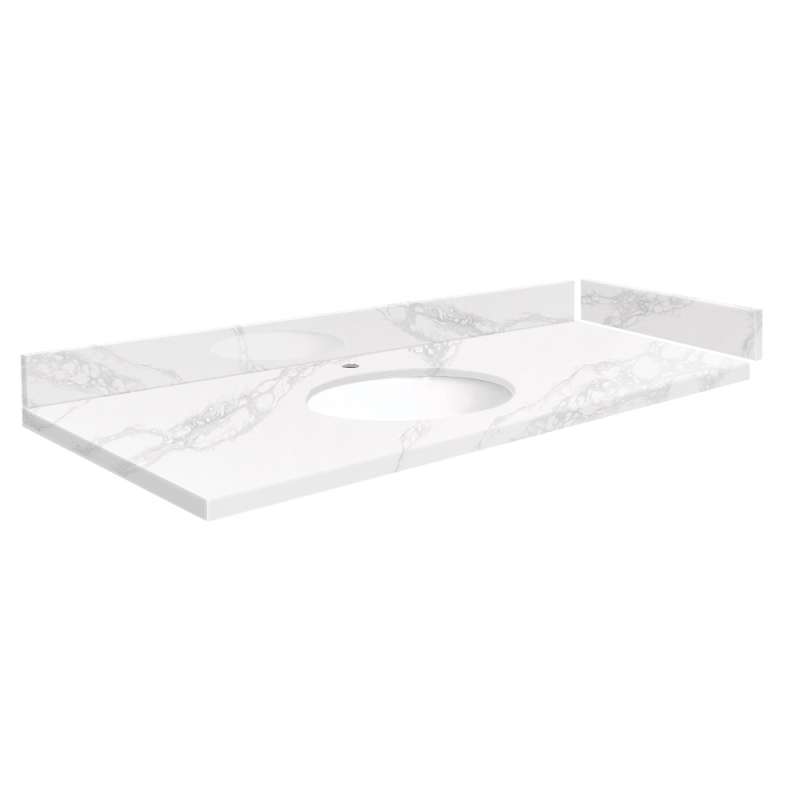 • SMVT49-60.75x22-1MU-M10 Mini Custom Quartz 49-60.75-in x 22-in Vanity Top with Millwood Bowl, White Carrara White Carrara