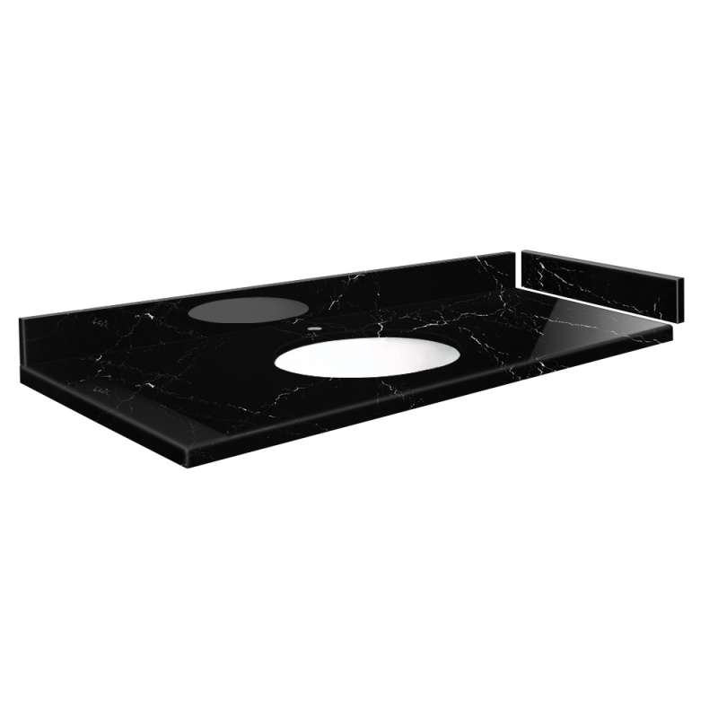 Sale SMVT49-60.75x22-1MU-M30 Mini Custom Quartz 49-60.75-in x 22-in Vanity Top with Millwood Bowl, Black Carrara