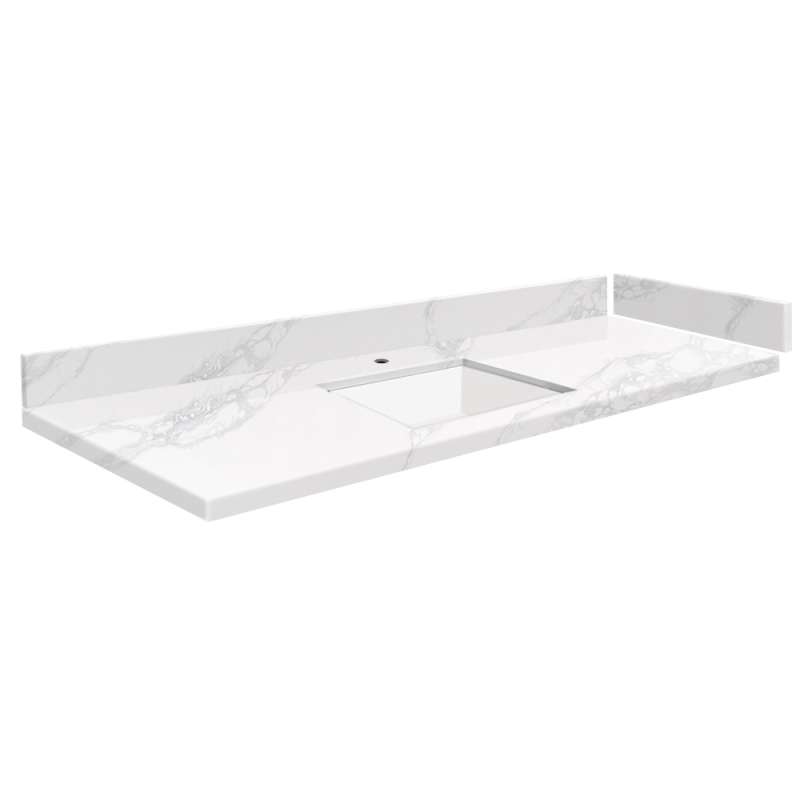 Sale SMVT61-72.75x22-1KU-M10 Mini Custom Quartz 61-72.75-in x 22-in Vanity Top with Vail Bowl, White Carrara