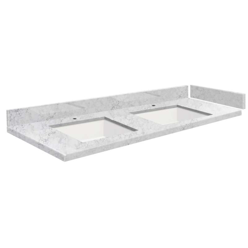 • SMVT61-72.75x22-2KU-M10 Mini Custom Quartz 61-72.75-in x 22-in Vanity Top with Vail Double Bowls, White Carrara White Carrara