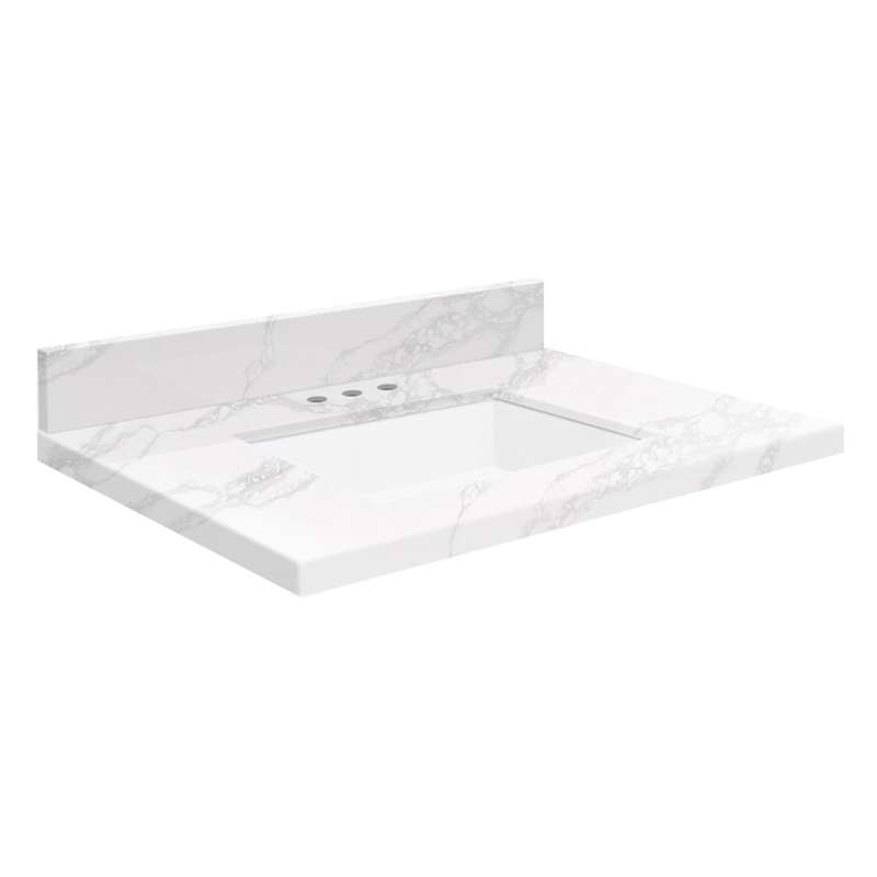 Quartz 0.75-in (2cm) thick bathroom vanity top comes in a polished finish with an eased edge