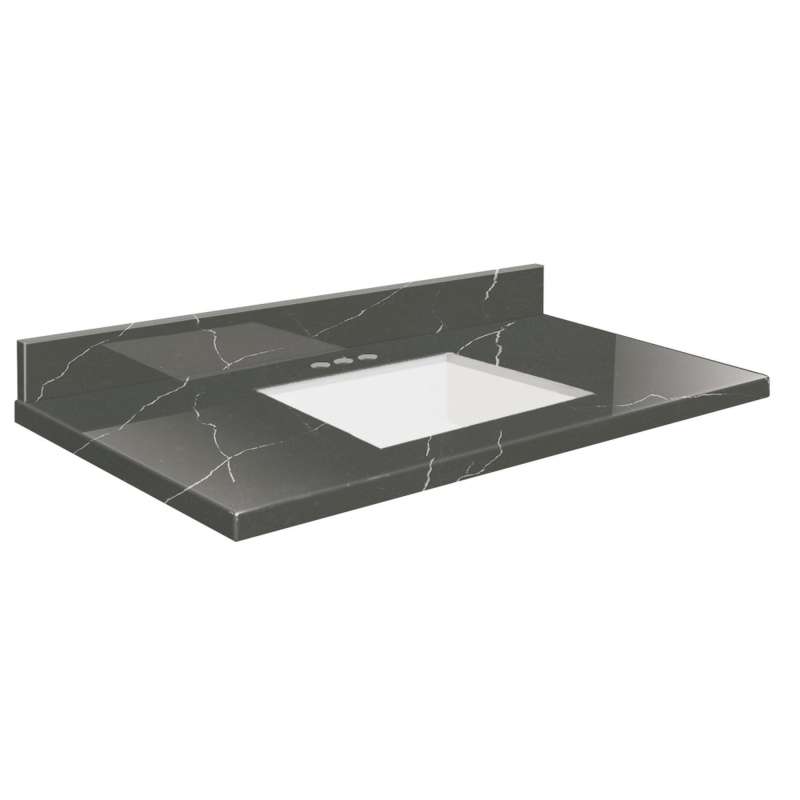 Quartz 0.75-in (2cm) thick bathroom vanity top comes in a polished finish with an eased edge