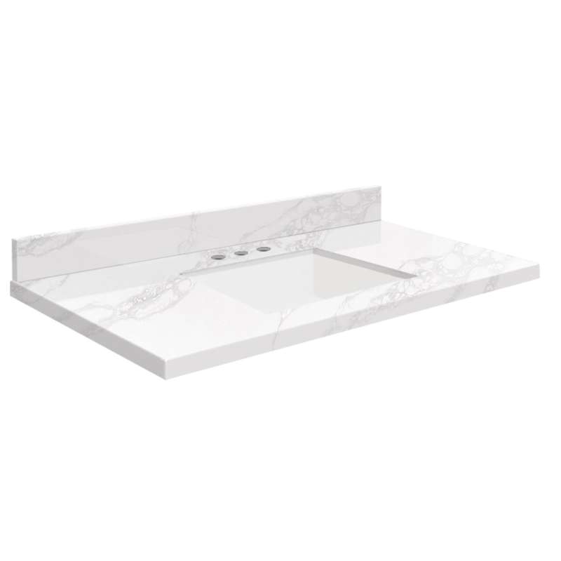 Quartz 0.75-in (2cm) thick bathroom vanity top comes in a polished finish with an eased edge