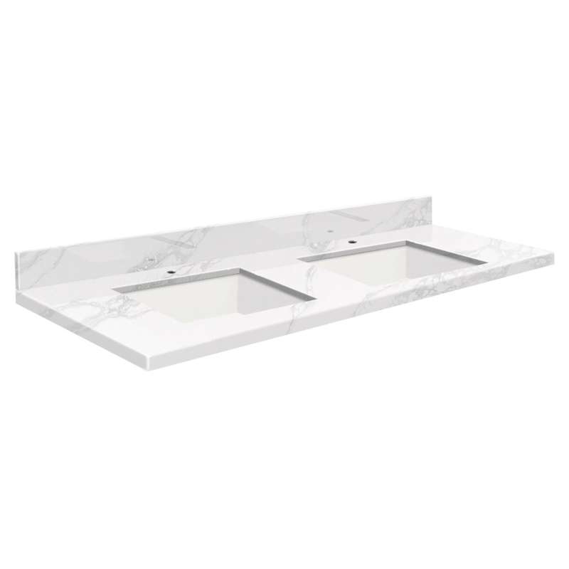 SMVTQU6122D-1-M10 61-in x 22-in Vanity Top with Single Faucet Hole, White Carrara