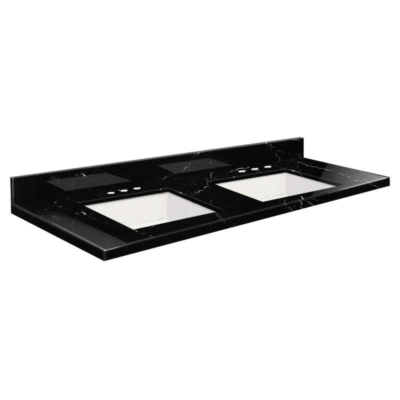 SMVTQU6122D-8-M30 61-in x 22-in Vanity Top with 8-in Widespread Faucet Hole, Black Carrara